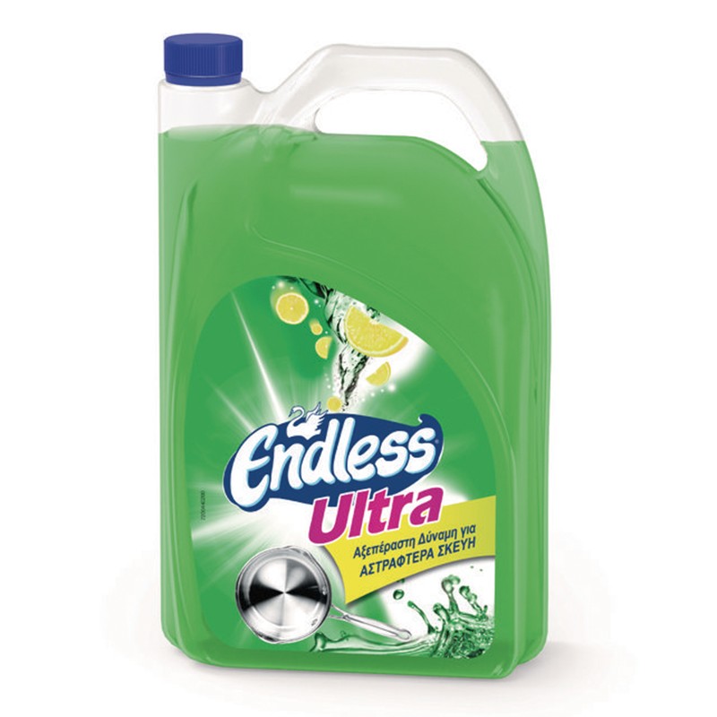 Υγρό πιάτων Endless Ultra, με την ισχύ του λεμονιού απομακρύνει κάθε οσμή από πιάτα, ποτήρια και μαγειρικά σκεύη, σε οικονομική συσκευασία 4 lt.