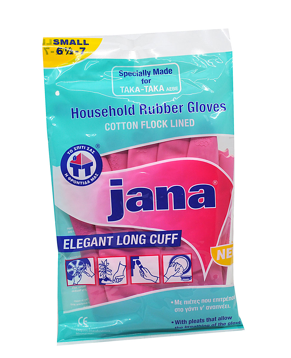 Γάντια κουζίνας – καθαριότητας JANA με φυσικό σχήμα παλάμης για καλύτερη εφαρμογή, κατάλληλα για όλες τις καθημερινές εργασίες στο σπίτι. Με ενισχυμένη επένδυση εσωτερικά που εμποδίζει την εφίδρωση της παλάμης και παράλληλα ενδυναμώνει την αντοχή του γαντιού.